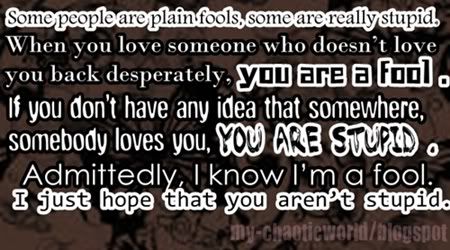 another quote whichh makes me smile :) Ayieee. So those stupid people out there, open your eyes widewide if not you'll miss tht person u're looking for .